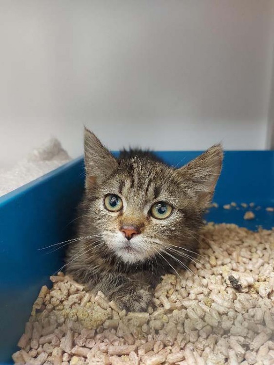 Kotě bylo odchyceno spolu se sourozencem a dospělým divokým kocourem v Srbicích. Zatím nespolupracuje a útočí. Nutná socializace. Zatím v karanténě. Více na 723 489 796.