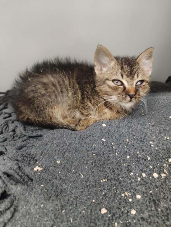 | Kotě bylo nalezeno v Žalanech na soukromém pozemku firmy, kde se nekontrolovaně množí kočky. Kuky je vyhublé na kost. Uvidíme, zda to zvládne. Více na 723 489 796.